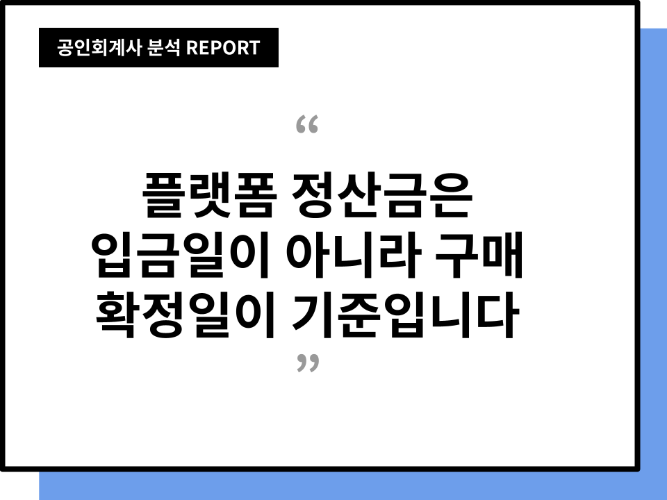 플랫폼 매출은 매출 누락의 또 다른 함정입니다. 통장에 돈이 들어온 날짜 기준으로 부가가치세 신고를 하시면 나중에 반드시 문제가 생깁니다. 많은 대표님들이 플랫폼 정산 구조를 현금주의로 착각하시는 경우가 많습니다. 쿠팡이든 네이버든 어떤 플랫폼이든 간에 플랫폼이 실제로 대표님께 정산 대금을 입금해 주는 시점은 고객이 구매를 최종적으로 확정한 시점과 다릅니다. 이 시간 차이를 무시하면 매출 귀속 연도가 엉켜버립니다. 특히 연말에 이 문제가 심각하죠. 12월에 용역 제공이 완료되었는데 정산금은 다음 해 1월에 들어오는 경우가 대표적인 예입니다. 세금은 현금주의가 아니라 발생주의라는 것을 늘 기억하셔야 합니다. 플랫폼에서 공식적으로 제공하는 정산 내역서나 구매 확정일을 기준으로 용역 제공 시점을 정확히 파악해서 해당 연도 매출로 잡아야 합니다. 이 기준을 명확히 하지 않으면 국세청에서 소명 요청이 왔을 때 자료 준비가 복잡해집니다.
