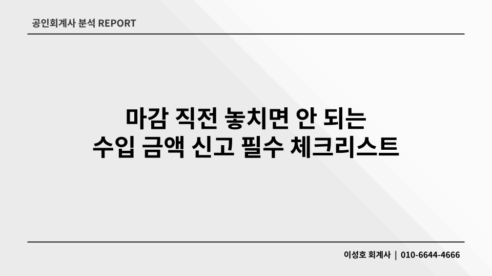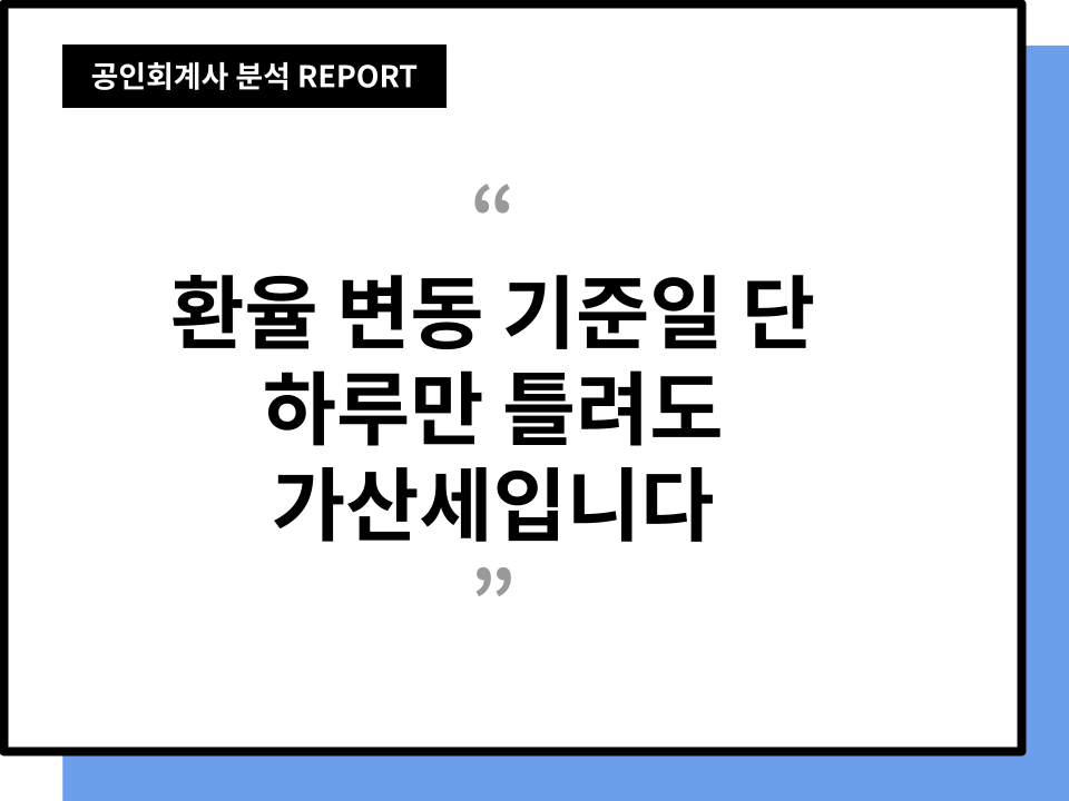 국내 거래에서 공급가액을 잡는 기준이 있다면, 해외 거래는 환율이라는 변수가 하나 더 끼어듭니다. 달러를 원화로 얼마에 확정했는지에 대한 고민이 대표님들을 괴롭히죠. 회계팀 편의상 월말 환율로 통일하시는 경우가 많은데, 세무는 그걸 인정하지 않습니다. 수입이나 수출 대금이 실제로 확정된 날 또는 통장에 들어온 날의 기준 환율을 적용해야 합니다. 이 날짜가 하루만 틀어져도 원화 환산액이 달라지므로, 최종 마감 전 반드시 송금 기록과 기준 환율 시점을 대조해야 합니다. 환산 시점 오류는 곧 매출 누락입니다. 사소한 오류가 큰 세금 폭탄을 만듭니다.