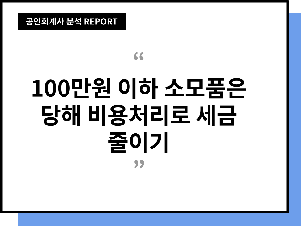 100만원 이하 소모품은 즉시 비용 처리, 감가상각 대신 선택해야 할 최적화 전략